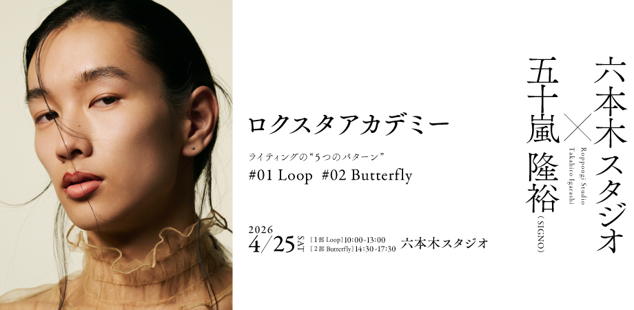 第2回では、ライティングの基礎を形作る二つのライト「Loop」と「Butterfly」をテーマにした講義を1日で開催します。午前は前回も好評を得たLoop、午後は新たにButterflyを取り上げ、それぞれ独立した講義として開催。LoopとButterflyはポートレートライティングの双璧を成す基本ライトであり、この二つを理解することで人物撮影における光の設計がクリアになります。
